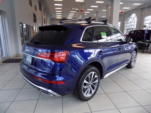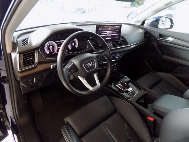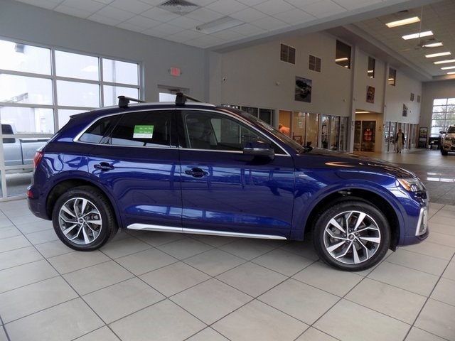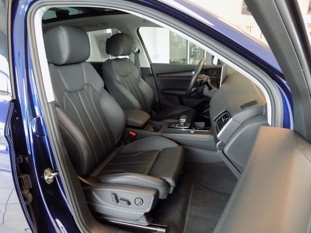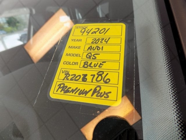 2024 Audi Q5 45 S line Premium quattro Navarra Blue Metallic 2.0L Turbocharged quattro CARFAX One-Owner. Clean CARFAX. Odometer is 6066 miles below market average! 10 Speakers, 4-Wheel Disc Brakes, ABS brakes, Alloy wheels, Auto High-beam Headlights, Auto-dimming Rear-View mirror, Automatic temperature control, Emergency communication system: Audi connect CARE, Exterior Parking Camera Rear, Front anti-roll bar, Front dual zone A/C, Front fog lights, Garage door transmitter: HomeLink, Genuine wood console insert, Genuine wood dashboard insert, Genuine wood door panel insert, Heated 8-Way Power Front Bucket Seats, Heated door mirrors, Heated front seats, Heated steering wheel, Leather Seating Surfaces, Outside temperature display, Power door mirrors, Power driver seat, Power Liftgate, Power passenger seat, Power windows, Radio data system, Radio: Audi Sound System, Rain sensing wipers, Rear air conditioning, Rear anti-roll bar, Remote keyless entry, Security system, Speed-sensing steering, Speed-Sensitive Wipers, Split folding rear seat, Spoiler, Steering wheel mounted audio controls, Turn signal indicator mirrors, 5.302 Axle Ratio, Air Conditioning, AM/FM radio, Brake assist, Bumpers: body-color, Compass, Delay-off headlights, Driver door bin, Driver vanity mirror, Dual front impact airbags, Dual front side impact airbags, Electronic Stability Control, Four wheel independent suspension, Front Bucket Seats, Front Center Armrest, Front reading lights, Illuminated entry, Leather Shift Knob, Leather steering wheel, Low tire pressure warning, Occupant sensing airbag, Overhead airbag, Overhead console, Panic alarm, Passenger door bin, Passenger vanity mirror, Power steering, Rear fog lights, Rear reading lights, Rear seat center armrest, Rear window defroster, Rear window wiper, Roof rack, Speed control, Tachometer, Telescoping steering wheel, Tilt steering wheel, Traction control, Trip computer, Variably intermittent wipers, Wheels: 18" 5-Arm-Turbine Design, 10 Speakers, 4-Wheel Disc Brakes, ABS brakes, Alloy wheels, Auto High-beam Headlights, Auto-dimming Rear-View mirror, Automatic temperature control, Emergency communication system: Audi connect CARE, Exterior Parking Camera Rear, Front anti-roll bar, Front dual zone A/C, Front fog lights, Garage door transmitter: HomeLink, Genuine wood console insert, Genuine wood dashboard insert, Genuine wood door panel insert, Heated 8-Way Power Front Bucket Seats, Heated door mirrors, Heated front seats, Heated steering wheel, Leather Seating Surfaces, Outside temperature display, Power door mirrors, Power driver seat, Power Liftgate, Power passenger seat, Power windows, Radio data system, Radio: Audi Sound System, Rain sensing wipers, Rear air conditioning, Rear anti-roll bar, Remote keyless entry, Security system, Speed-sensing steering, Speed-Sensitive Wipers, Split folding rear seat, Spoiler, Steering wheel mounted audio controls, Turn signal indicator mirrors.