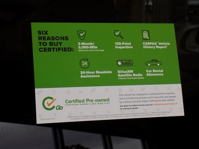Certified. Certification Program Details: Every CPO Diversified vehicle goes through a rigorous 125-Point Inspection and is backed with a factory 3 Month / 3,000 Mile Extended Care premium Limited Warranty. Benefits Include: 125 Point Inspection, Complimentary Vehicle History Report, $500 Emergency Trip Reimbursement, $45/Day Car Rental/Taxi Allowance, $100 "Sign-and-Go" Roadside Assistance (+$75 w/Trailer), 3 Month SiriusXM Subscription