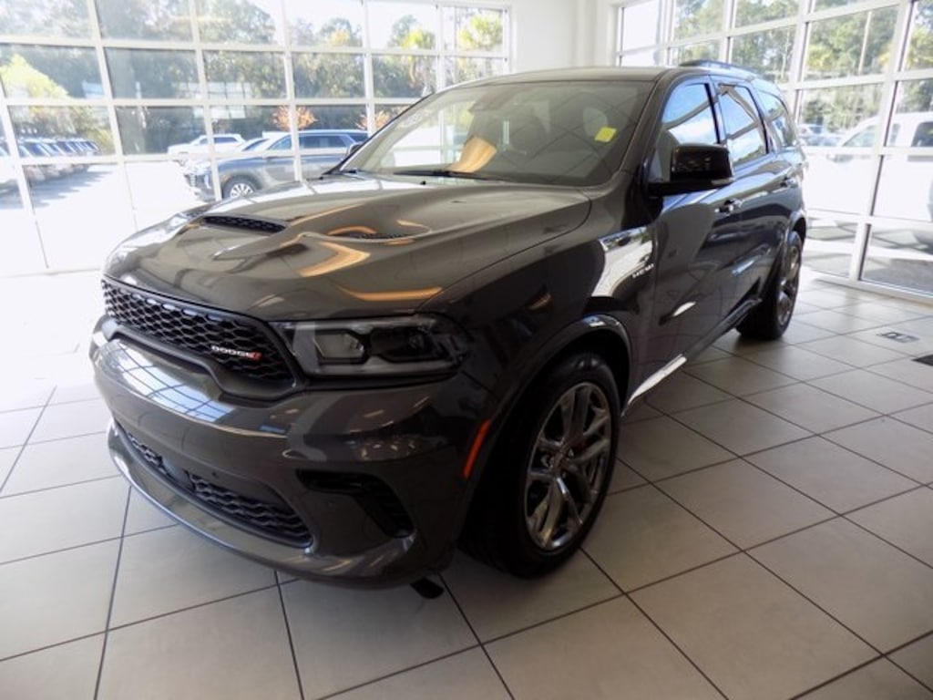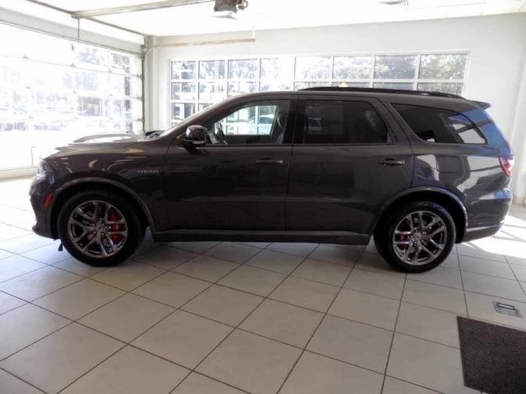 2024 Dodge Durango R/T Plus TOW N GO AWD Vapor Gray HEMI 5.7L V8 Multi Displacement VVT AWD CARFAX One-Owner. Clean CARFAX. Odometer is 2705 miles below market average! 115V Auxiliary Power Outlet, 145 mph Maximum Speed Calibration, 160 mph Primary Speedometer, 4-Wheel Disc Brakes, 7 & 4 Pin Wiring Harness, ABS brakes, Active Noise Control System, Adaptive Cruise Control w/Stop, Adaptive Damping, Alloy wheels, Apple CarPlay/Android Auto, Auto High-beam Headlights, Auto-Dimming Exterior Driver Mirror, Auto-dimming Rear-View mirror, Auto-leveling suspension, Automatic Headlamp Leveling System, Automatic temperature control, Black Roof Rails, Blind Spot w/Trailer Detection, Brembo Brakes w/SRT Performance Pad, Class IV Receiver Hitch, Dual Remote USB Port - Charge Only, Electronic Limited Slip Differential Rear Axle, Emergency communication system, Exterior Mirrors w/Heating Element, Exterior Mirrors w/Memory, Exterior Mirrors w/Supplemental Signals, Floor Console w/Leather Armrest, Front dual zone A/C, Full Speed Forward Collision Warning Plus, Fully automatic headlights, Garage door transmitter, Gloss Black Exterior Mirrors, Heated door mirrors, Heated front seats, Heated Second Row Seats, Heated steering wheel, High Perform Suspension, High Performance Exhaust, Integrated Roof Rail Crossbars, Leather Trimmed Bucket Seats, Leather Wrapped Door Panels, LED Auxiliary Low Beam & Turn Signal, Navigation system: TomTom, Outside temperature display, ParkView Rear Back-Up Camera, Performance Tuned Steering, Power 6x9 Multi-Function Foldaway Mirrors, Power 8-Way Driver Memory 8-Way Passenger Seats, Power door mirrors, Power driver seat, Power Driver/Passenger 4-Way Lumbar Adjust, Power Liftgate, Power Sunroof, Power Tilt & Telescopic Steering Column, Power windows, Quadra-Trac Active-on-Demand 4WD, Quick Order Package 22T R/T Plus, Radio: Uconnect 5 Nav w/10.1" Display, Radio/Driver Seat/Mirrors Memory, Rain sensing wipers, Rear air conditioning, Rear anti-roll bar, Rear Load Leveling Suspension, Red Accent Stitching, Remote keyless entry, Run Flat Tires, Security system, Speed-sensing steering, Speed-Sensitive Wipers, Split folding rear seat, Spoiler, Sport/Track/Tow/Snow Drive Modes, Steering wheel mounted audio controls, Tow 'N Go Package (DISC), Trailer Brake Control, Upper/Lower Body Color Rear Fascia, Ventilated Front Seats, Wheels: 20" x 10" Hyper Black Aluminum (DISC), 3.09 Rear Axle Ratio, 3rd row seats: split-bench, 9 Speakers, Air Conditioning, AM/FM radio: SiriusXM w/360L, Brake assist, Bumpers: body-color, Cloth Bucket Seats w/Shift Insert, Compass, Delay-off headlights, Driver door bin, Driver vanity mirror, Dual front impact airbags, Dual front side impact airbags, Electronic Stability Control, Four wheel independent suspension, Front anti-roll bar, Front Bucket Seats, Front Center Armrest w/Storage, Front reading lights, Illuminated entry, Knee airbag, Leather steering wheel, Low tire pressure warning, Occupant sensing airbag, Overhead airbag, Overhead console, Panic alarm, Passenger door bin, Passenger vanity mirror, Power steering, Radio data system, Rear reading lights, Rear seat center armrest, Rear window defroster, Rear window wiper, Speed control, Sport steering wheel, Tachometer, Telescoping steering wheel, Tilt steering wheel, Traction control, Trip computer, Variably intermittent wipers, Voltmeter, Wheels: 20" x 8.0" Fine Silver, 115V Auxiliary Power Outlet, 145 mph Maximum Speed Calibration, 160 mph Primary Speedometer, 4-Wheel Disc Brakes, 7 & 4 Pin Wiring Harness, ABS brakes, Active Noise Control System, Adaptive Cruise Control w/Stop, Adaptive Damping, Alloy wheels, Apple CarPlay/Android Auto, Auto High-beam Headlights, Auto-Dimming Exterior Driver Mirror, Auto-dimming Rear-View mirror, Auto-leveling suspension, Automatic Headlamp Leveling System, Automatic temperature control, Black Roof Rails, Blind Spot w/Trailer Detection, Brembo Brakes w/SRT Performance Pad, Class IV Receiver Hitch, Dual Remote USB Po