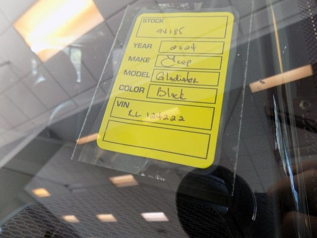 2024 Jeep Gladiator Rubicon Black Clearcoat 3.6L V6 24V VVT 4WD CARFAX One-Owner. Clean CARFAX. Odometer is 1669 miles below market average! 12.3" Touchscreen Display, 4-Wheel Disc Brakes, 4G LTE Wi-Fi Hot Spot, ABS brakes, Alexa Built-In, Alloy wheels, Alpine Premium Audio System, Apple CarPlay, Apple CarPlay/Android Auto, Auto High Beam Headlamp Control, Auto-Dimming Rear-View Mirror, Automatic temperature control, Blind Spot & Cross Path Detection, Bluetooth Wireless Speaker, Cargo Group w/Trail Rail System, Connected Travel & Traffic Services, Connectivity - US/Canada, Convenience Group, Emergency communication system: Jeep Connect, Emergency/Assistance Call, Exterior 115V AC Outlet, For Details, Visit DriveUconnect.com, Front anti-roll bar, Front dual zone A/C, Front fog lights, Fully automatic headlights, Google Android Auto, GPS Antenna Input, GPS Navigation, HD Radio, Heated door mirrors, Heated Front Seats, Heated Steering Wheel, Integrated Off-Road Camera, Integrated roll-over protection, Integrated Voice Command w/Bluetooth, Lockable Rear Underseat Storage, MOPAR Spray In Bedliner, Outside temperature display, ParkSense Rear Park Assist System, Performance Suspension, Power door mirrors, Power windows, Quick Order Package 24R Rubicon, Radio: Uconnect 5 Nav w/12.3" Display, Rear anti-roll bar, Remote keyless entry, Remote Start System, Roll-Up Tonneau Cover, Safety Group, SiriusXM Radio Service, SiriusXM w/360L, Split folding rear seat, Steering wheel mounted audio controls, Technology Group, Trail Rails, Universal Garage Door Opener, USB Host Flip, 4.10 Rear Axle Ratio, 8 Speakers, 97 MPH Vehicle Max Speed Calibration, Air Conditioning, AM/FM radio: SiriusXM with 360L, Brake assist, Cloth Low-Back Bucket Seats, Compass, Delay-off headlights, Driver door bin, Driver vanity mirror, Dual front impact airbags, Dual front side impact airbags, Electronic Stability Control, Front Bucket Seats, Front Center Armrest w/Storage, Front reading lights, Illuminated entry, Integrated Center Stack Radio, Low tire pressure warning, Manufacturer's Statement of Origin (DISC), MOPAR All-Weather Slush Mats, Mopar Bright Door Sills, Occupant sensing airbag, Overhead airbag, Panic alarm, Passenger door bin, Passenger vanity mirror, Power steering, Radio data system, Radio: Uconnect 5 w/12.3" Display, Rear reading lights, Security system, Speed control, Tachometer, Telescoping steering wheel, Tilt steering wheel, Traction control, Trip computer, Variably intermittent wipers, Voltmeter, Wheels: 17" x 7.5" Machined/Painted Black, 12.3" Touchscreen Display, 4-Wheel Disc Brakes, 4G LTE Wi-Fi Hot Spot, ABS brakes, Alexa Built-In, Alloy wheels, Alpine Premium Audio System, Apple CarPlay, Apple CarPlay/Android Auto, Auto High Beam Headlamp Control, Auto-Dimming Rear-View Mirror, Automatic temperature control, Blind Spot & Cross Path Detection, Bluetooth Wireless Speaker, Cargo Group w/Trail Rail System, Connected Travel & Traffic Services, Connectivity - US/Canada, Convenience Group, Emergency communication system: Jeep Connect, Emergency/Assistance Call, Exterior 115V AC Outlet, For Details, Visit DriveUconnect.com, Front anti-roll bar, Front dual zone A/C, Front fog lights, Fully automatic headlights, Google Android Auto, GPS Antenna Input, GPS Navigation, HD Radio, Heated door mirrors, Heated Front Seats, Heated Steering Wheel, Integrated Off-Road Camera, Integrated roll-over protection, Integrated Voice Command w/Bluetooth, Lockable Rear Underseat Storage, MOPAR Spray In Bedliner, Outside temperature display, ParkSense Rear Park Assist System, Performance Suspension, Power door mirrors, Power windows, Quick Order Package 24R Rubicon, Radio: Uconnect 5 Nav w/12.3" Display, Rear anti-roll bar, Remote keyless entry, Remote Start System, Roll-Up Tonneau Cover, Safety Group, SiriusXM Radio Service, SiriusXM w/360L, Split folding rear seat, Steering wheel mounted audio controls, Technology Group, Trail Rails, Universal Garage Door Opener, USB Host