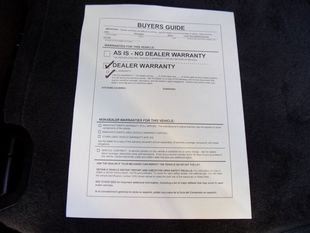 2024 Jeep Wrangler Willys Limited Edition Tuscadero Pearlcoat 3.6L V6 24V VVT 4WD CARFAX One-Owner. Clean CARFAX. 2-Door Passive Entry, Front Door Locks, 240 Amp Alternator, 4-Wheel Disc Brakes, 4-Wheel Drive Swing Gate Decal, 4.10 Rear Axle Ratio, 7 & 4 Pin Wiring Harness, 97 MPH Vehicle Max Speed Calibration, ABS brakes, Advanced Brake Assist, Air Conditioning w/Auto Temperature Control, Air Filtering, Alpine Premium Audio System, Apple CarPlay/Android Auto, Auto High Beam Headlamp Control, Automatic Headlamps, Auxiliary Switches, Black 3-Piece Hard Top, Black Grille, Blind Spot & Cross Path Detection, Class II Receiver Hitch, Cluster 7.0" TFT Color Display, Convenience Group, Conventional Differential Front Axle, Corning Gorilla Glass, Dana M210 Wide HD Tube Front Axle, Dana M220 Wide Rear Axle, Daytime Running Lamps LED Accents, Deep Tint Sunscreen Windows, E-Locker Rear Axle, Emergency/Assistance Call, Enhanced Adaptive Cruise Control, Freedom Panel Storage Bag, Front 1-Touch Down Power Windows, Front anti-roll bar, Front fog lights, Front LED Fog Lamps, Full Speed Forward Collision Warning Plus, Heated Front Seats, Heated Steering Wheel, Injection Molded Black Rear Bumper, Integrated roll-over protection, LED Premium Reflector Headlamps, LED Taillamps, Mold In Color Bumper w/Gloss Black, Molded in Color Rubicon Highline Flare, MOPAR All-Weather Floor Mats, MOPAR Sunrider For Hardtop, No Soft Top, Off-Road Plus Mode, Outside temperature display, ParkSense Rear Park Assist System, ParkView Rear Back-Up Camera, Power Heated Mirrors, Premium Wrapped Steering Wheel, Quick Order Package 24W Willys, Radio: Uconnect 5 w/12.3" Display, Rear anti-roll bar, Rear Window Defroster, Rear Window Wiper/Washer, Remote Keyless Entry, Remote Start System, Safety Group, Security Alarm, Speed Sensitive Power Locks, Split folding rear seat, Steering wheel mounted audio controls, Sun Visors w/Illuminated Vanity Mirrors, Technology Group, Universal Garage Door Opener, Wheels: 17" x 7.5" Painted Black, Willy's Suspension, Willys, Willys Hood Decal, 110 MPH Vehicle Max Speed Calibration, 8 Speakers, Air Conditioning, AM/FM radio, Aux Battery, Brake assist, Cloth Low-Back Bucket Seats, Compass, Delay-off headlights, Driver door bin, Driver vanity mirror, Dual front impact airbags, Dual front side impact airbags, Electronic Stability Control, Front Bucket Seats, Front Center Armrest w/Storage, Front reading lights, Low tire pressure warning, Non-Lock Fuel Cap w/o Discriminator, Normal Duty Suspension, Occupant sensing airbag, Overhead airbag, Passenger door bin, Passenger vanity mirror, Power steering, Radio data system, Rear reading lights, Speed control, Stop-Start Dual Battery System, Tachometer, Telescoping steering wheel, Tilt steering wheel, Traction control, Trip computer, Variably intermittent wipers, Wheels: 17" x 7.5" Black Steel Styled, 2-Door Passive Entry, Front Door Locks, 240 Amp Alternator, 4-Wheel Disc Brakes, 4-Wheel Drive Swing Gate Decal, 4.10 Rear Axle Ratio, 7 & 4 Pin Wiring Harness, 97 MPH Vehicle Max Speed Calibration, ABS brakes, Advanced Brake Assist, Air Conditioning w/Auto Temperature Control, Air Filtering, Alpine Premium Audio System, Apple CarPlay/Android Auto, Auto High Beam Headlamp Control, Automatic Headlamps, Auxiliary Switches, Black 3-Piece Hard Top, Black Grille, Blind Spot & Cross Path Detection, Class II Receiver Hitch, Cluster 7.0" TFT Color Display, Convenience Group, Conventional Differential Front Axle, Corning Gorilla Glass, Dana M210 Wide HD Tube Front Axle, Dana M220 Wide Rear Axle, Daytime Running Lamps LED Accents, Deep Tint Sunscreen Windows, E-Locker Rear Axle, Emergency/Assistance Call, Enhanced Adaptive Cruise Control, Freedom Panel Storage Bag, Front 1-Touch Down Power Windows, Front anti-roll bar, Front fog lights, Front LED Fog Lamps, Full Speed Forward Collision Warning Plus, Heated Front Seats, Heated Steering Wheel, Injection Molded Black Rear Bumper, Integrated roll-over protection, LED P