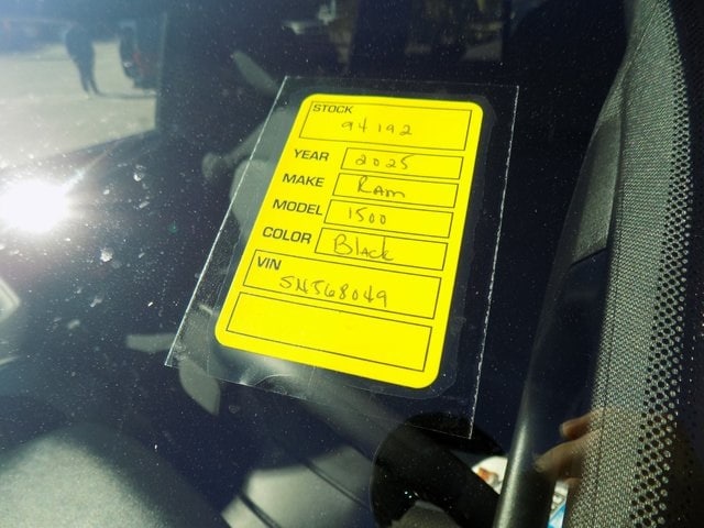 2025 Ram 1500 Tradesman Diamond Black Crystal Pearlcoat 3.6L V6 24V VVT RWD CARFAX One-Owner. Clean CARFAX. 2nd Row In Floor Storage Bins, 3 Rear Seat Head Restraints, 4 Way Front Headrests, 4-Wheel Disc Brakes, 40/20/40 Split Bench Seat, 400W Inverter, ABS brakes, Anti-Spin Differential Rear Axle, Apple CarPlay/Android Auto, Auto High-beam Headlights, Bed Utility Group, Black Interior Accents, Body Color Front Bumper, Body Color Rear Bumper w/Step Pads, Bridgestone Brand Tires, Cloth Bench Seat, Exterior Mirrors w/Heating Element, Front & Rear Floor Mats, Front anti-roll bar, Front Center Seat Cushion Storage, Front LED Fog Lamps, Front Seat Back Map Pockets, Fully automatic headlights, Grille Surround 1 Body Color Texture 1 Black, Heated door mirrors, Manual Adjust 4-Way Driver Seat, Manual Adjust 4-Way Front Passenger Seat, MOPAR 4 Adjustable Cargo Tie-Down Hooks, Mopar Black Tubular Side Steps, MOPAR Deployable Bed Step, MOPAR Spray In Bedliner, Outside temperature display, ParkView Rear Back-Up Camera, Pick-Up Box Lighting, Power door mirrors, Power windows, Quick Order Package 23A Tradesman, Rear 60/40 Folding Seat, Rear anti-roll bar, Rear Power Sliding Window, Rear step bumper, Remote keyless entry, Seat Parts Module II, SiriusXM Satellite Radio, Sport Appearance Package, Tradesman Level 1 Equipment Group, Wheels: 20" x 9.0" Aluminum Polished Painted, 115V Auxiliary Power Outlet, 6 Speakers, Air Conditioning, AM/FM radio, Black Exterior Mirrors, Brake assist, Compass, Delay-off headlights, Driver door bin, Dual front impact airbags, Dual front side impact airbags, Electronic Stability Control, Front Center Armrest, Front reading lights, Front wheel independent suspension, Heavy Duty Vinyl 40/20/40 Split Bench Seat, Illuminated entry, Low tire pressure warning, Manual Folding Exterior Mirrors, Manufacturer's Statement of Origin, Occupant sensing airbag, Overhead airbag, Overhead console, Panic alarm, Passenger door bin, Passenger vanity mirror, Power steering, Radio data system, Radio: Uconnect 5 W w/8.4" Display, Speed control, Tachometer, Telescoping steering wheel, Tilt steering wheel, Traction control, Tri-Fold Tonneau Cover, Variably intermittent wipers, Voltmeter, Wheels: 18" x 7.5" Steel Painted, 2nd Row In Floor Storage Bins, 3 Rear Seat Head Restraints, 4 Way Front Headrests, 4-Wheel Disc Brakes, 40/20/40 Split Bench Seat, 400W Inverter, ABS brakes, Anti-Spin Differential Rear Axle, Apple CarPlay/Android Auto, Auto High-beam Headlights, Bed Utility Group, Black Interior Accents, Body Color Front Bumper, Body Color Rear Bumper w/Step Pads, Bridgestone Brand Tires, Cloth Bench Seat, Exterior Mirrors w/Heating Element, Front & Rear Floor Mats, Front anti-roll bar, Front Center Seat Cushion Storage, Front LED Fog Lamps, Front Seat Back Map Pockets, Fully automatic headlights, Grille Surround 1 Body Color Texture 1 Black, Heated door mirrors, Manual Adjust 4-Way Driver Seat, Manual Adjust 4-Way Front Passenger Seat, MOPAR 4 Adjustable Cargo Tie-Down Hooks, Mopar Black Tubular Side Steps, MOPAR Deployable Bed Step, MOPAR Spray In Bedliner, Outside temperature display, ParkView Rear Back-Up Camera, Pick-Up Box Lighting, Power door mirrors, Power windows, Quick Order Package 23A Tradesman, Rear 60/40 Folding Seat, Rear anti-roll bar, Rear Power Sliding Window, Rear step bumper, Remote keyless entry, Seat Parts Module II, SiriusXM Satellite Radio, Sport Appearance Package, Tradesman Level 1 Equipment Group, Wheels: 20" x 9.0" Aluminum Polished Painted.