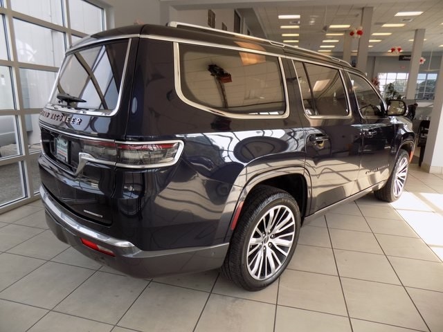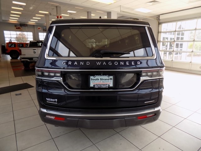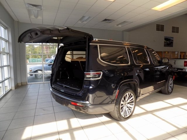 2022 Jeep Grand Wagoneer Series III 4x4 Midnight Sky 6.4L V8 4WD CARFAX One-Owner. 4-Wheel Disc Brakes, ABS brakes, Adjustable pedals, Alloy wheels, Amazon Fire TV Built-In, Audio memory, Auto High-beam Headlights, Auto-dimming door mirrors, Auto-dimming Rear-View mirror, Auto-leveling suspension, Automatic temperature control, Chrome Tow Hooks, Front dual zone A/C, Front fog lights, Fully automatic headlights, Garage door transmitter, Genuine wood console insert, Genuine wood dashboard insert, Genuine wood door panel insert, HD Trailer Tow Package, Heads-Up Display, Heated door mirrors, Heated front seats, Heated rear seats, Heated steering wheel, Heavy-Duty Engine Cooling, Memory seat, Navigation System, Night vision lights, Outside temperature display, Pedal memory, Power adjustable front head restraints, Power door mirrors, Power driver seat, Power Liftgate, Power moonroof, Power passenger seat, Power windows, Premium Leather Trimmed Bucket Seats, Quick Order Package 23W, Radio: Uconnect 5 Nav w/12.0" Display, Rain sensing wipers, Rear air conditioning, Rear anti-roll bar, Rear dual zone A/C, Rear Seat Video Group 1, Reclining 3rd row seat, Remote keyless entry, Removable Rear Tow Hook, Seatback Video Screens, Security system, Speed-sensing steering, Speed-Sensitive Wipers, Split folding rear seat, Steering wheel memory, Steering wheel mounted audio controls, Trailer Brake Control, Trailer Hitch Line-Up Assist, Trailer Hitch Zoom, Turn signal indicator mirrors, Two Tone Paint Group, Ventilated front seats, Ventilated rear seats, Video USB Port, 3.92 Rear Axle Ratio, 3rd row seats: bench, Air Conditioning, AM/FM radio: SiriusXM with 360L, Anti-whiplash front head restraints, Brake assist, Bumpers: body-color, Compass, Delay-off headlights, Driver door bin, Driver vanity mirror, Driver's Seat Mounted Armrest, Dual front impact airbags, Dual front side impact airbags, Electronic Stability Control, Embossed Metal Interior Accents, Four wheel independent suspension, Front anti-roll bar, Front Bucket Seats, Front Center Armrest w/Storage, Front reading lights, Illuminated entry, Knee airbag, Leather steering wheel, Low tire pressure warning, Normal Duty Suspension, Occupant sensing airbag, Overhead airbag, Overhead console, Panic alarm, Passenger door bin, Passenger seat mounted armrest, Passenger vanity mirror, Power steering, Rear reading lights, Rear seat center armrest, Rear window defroster, Rear window wiper, Roof rack, Speed control, Tachometer, Telescoping steering wheel, Tilt steering wheel, Traction control, Trip computer, Variably intermittent wipers, Voltmeter, Wheels: 22" x 9.0" Premium 4 Aluminum, 4-Wheel Disc Brakes, ABS brakes, Adjustable pedals, Alloy wheels, Amazon Fire TV Built-In, Audio memory, Auto High-beam Headlights, Auto-dimming door mirrors, Auto-dimming Rear-View mirror, Auto-leveling suspension, Automatic temperature control, Chrome Tow Hooks, Front dual zone A/C, Front fog lights, Fully automatic headlights, Garage door transmitter, Genuine wood console insert, Genuine wood dashboard insert, Genuine wood door panel insert, HD Trailer Tow Package, Heads-Up Display, Heated door mirrors, Heated front seats, Heated rear seats, Heated steering wheel, Heavy-Duty Engine Cooling, Memory seat, Navigation System, Night vision lights, Outside temperature display, Pedal memory, Power adjustable front head restraints, Power door mirrors, Power driver seat, Power Liftgate, Power moonroof, Power passenger seat, Power windows, Premium Leather Trimmed Bucket Seats, Quick Order Package 23W, Radio: Uconnect 5 Nav w/12.0" Display, Rain sensing wipers, Rear air conditioning, Rear anti-roll bar, Rear dual zone A/C, Rear Seat Video Group 1, Reclining 3rd row seat, Remote keyless entry, Removable Rear Tow Hook, Seatback Video Screens, Security system, Speed-sensing steering, Speed-Sensitive Wipers, Split folding rear seat, Steering wheel memory, Steering wheel mounted audio controls, Trailer Brake Control, Trailer Hitch Lin