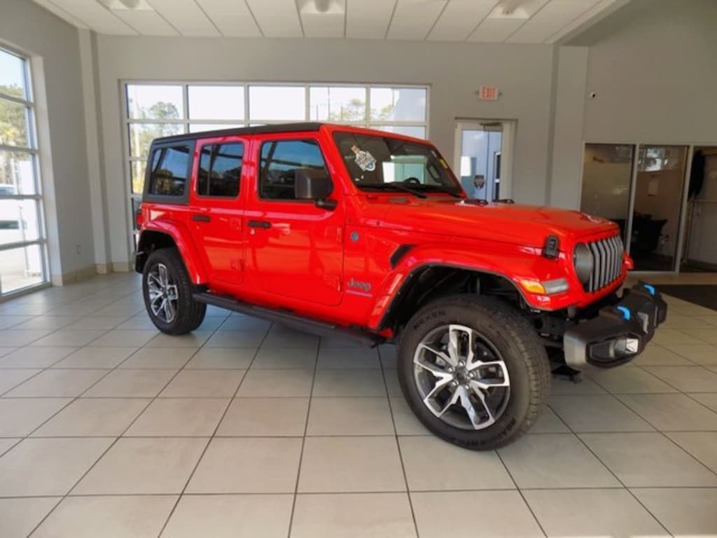 2024 Jeep Wrangler Sport S 4xe Firecracker Red Clearcoat 2.0L I4 DOHC 4WD CARFAX One-Owner. 2-Door Passive Entry, Front Door Locks, 4-Wheel Disc Brakes, Alloy wheels, Apple CarPlay/Android Auto, Automatic temperature control, Black 3-Piece Hard Top, Convenience Group, Emergency/Assistance Call, Freedom Panel Storage Bag, Front anti-roll bar, Front dual zone A/C, Front fog lights, Fully automatic headlights, Heated door mirrors, Heated Front Seats, Heated Steering Wheel, Integrated roll-over protection, Mopar Black Tubular Side Steps, No Soft Top, Outside temperature display, ParkView Rear Back-Up Camera, Power door mirrors, Power windows, Quick Order Package 29U Sport S, Rear anti-roll bar, Rear Window Defroster, Rear Window Wiper/Washer, Remote keyless entry, Remote Start System, Security system, Split folding rear seat, Steering wheel mounted audio controls, Universal Garage Door Opener, 3.73 Rear Axle Ratio, 8 Speakers, ABS brakes, Air Conditioning, Brake assist, Cloth Low-Back Bucket Seats, Compass, Delay-off headlights, Driver door bin, Driver vanity mirror, Dual front impact airbags, Dual front side impact airbags, Electronic Stability Control, Front Bucket Seats, Front Center Armrest w/Storage, Front License Plate Bracket, Front reading lights, Illuminated entry, Low tire pressure warning, MOPAR All-Weather Floor Mats, Occupant sensing airbag, Overhead airbag, Panic alarm, Passenger door bin, Passenger vanity mirror, Power steering, Radio data system, Radio: Uconnect 5 w/12.3" Display, Rear reading lights, Speed control, Sport Suspension, Tachometer, Telescoping steering wheel, Tilt steering wheel, Traction control, Trip computer, Variably intermittent wipers, Voltmeter, Wheels: 20" x 8" Machined/Painted Gray, 2-Door Passive Entry, Front Door Locks, 4-Wheel Disc Brakes, Alloy wheels, Apple CarPlay/Android Auto, Automatic temperature control, Black 3-Piece Hard Top, Convenience Group, Emergency/Assistance Call, Freedom Panel Storage Bag, Front anti-roll bar, Front dual zone A/C, Front fog lights, Fully automatic headlights, Heated door mirrors, Heated Front Seats, Heated Steering Wheel, Integrated roll-over protection, Mopar Black Tubular Side Steps, No Soft Top, Outside temperature display, ParkView Rear Back-Up Camera, Power door mirrors, Power windows, Quick Order Package 29U Sport S, Rear anti-roll bar, Rear Window Defroster, Rear Window Wiper/Washer, Remote keyless entry, Remote Start System, Security system, Split folding rear seat, Steering wheel mounted audio controls, Universal Garage Door Opener.