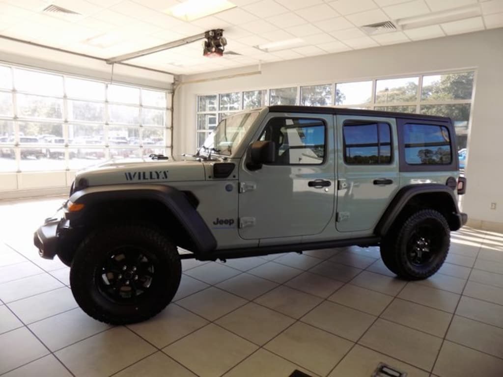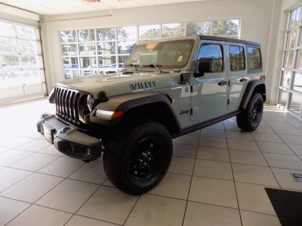 2024 Jeep Wrangler Willys 4xe Earl Clearcoat 2.0L I4 DOHC 4WD CARFAX One-Owner. 4-Wheel Disc Brakes, 4.10 Rear Axle Ratio, 4xe 4-Wheel Drive Swing Gate Decal, 7 & 4 Pin Wiring Harness, 97 MPH Vehicle Max Speed Calibration, ABS brakes, Alloy wheels, Apple CarPlay/Android Auto, Automatic temperature control, Auxiliary Switches, Black 3-Piece Hard Top, Black Grille, Conventional Differential Front Axle, E-Locker Rear Axle, Freedom Panel Storage Bag, Front anti-roll bar, Front dual zone A/C, Front fog lights, Front LED Fog Lamps, Fully automatic headlights, Heated door mirrors, Integrated roll-over protection, LED Premium Reflector Headlamps, Molded in Color Rubicon Highline Flare, MOPAR All-Weather Floor Mats, No Soft Top, Off-Road Plus Mode, Outside temperature display, ParkView Rear Back-Up Camera, Power door mirrors, Power windows, Quick Order Package 29W Willys, Radio: Uconnect 5 w/12.3" Display, Rear anti-roll bar, Rear Window Defroster, Rear Window Wiper/Washer, Remote keyless entry, Split folding rear seat, Sport Suspension, Steering wheel mounted audio controls, Wheels: 17" x 7.5" Painted Black, Willy's Suspension, Willys, Willys 4xe Hood Decal, 8 Speakers, Air Conditioning, Brake assist, Cloth Low-Back Bucket Seats, Compass, Delay-off headlights, Driver door bin, Driver vanity mirror, Dual front impact airbags, Dual front side impact airbags, Electronic Stability Control, Front Bucket Seats, Front Center Armrest w/Storage, Front reading lights, Illuminated entry, Low tire pressure warning, Occupant sensing airbag, Overhead airbag, Panic alarm, Passenger door bin, Passenger vanity mirror, Power steering, Radio data system, Rear reading lights, Security system, Speed control, Tachometer, Telescoping steering wheel, Tilt steering wheel, Traction control, Trip computer, Variably intermittent wipers, Voltmeter, Wheels: 20" x 8" Machined/Painted Gray, 4-Wheel Disc Brakes, 4.10 Rear Axle Ratio, 4xe 4-Wheel Drive Swing Gate Decal, 7 & 4 Pin Wiring Harness, 97 MPH Vehicle Max Speed Calibration, ABS brakes, Alloy wheels, Apple CarPlay/Android Auto, Automatic temperature control, Auxiliary Switches, Black 3-Piece Hard Top, Black Grille, Conventional Differential Front Axle, E-Locker Rear Axle, Freedom Panel Storage Bag, Front anti-roll bar, Front dual zone A/C, Front fog lights, Front LED Fog Lamps, Fully automatic headlights, Heated door mirrors, Integrated roll-over protection, LED Premium Reflector Headlamps, Molded in Color Rubicon Highline Flare, MOPAR All-Weather Floor Mats, No Soft Top, Off-Road Plus Mode, Outside temperature display, ParkView Rear Back-Up Camera, Power door mirrors, Power windows, Quick Order Package 29W Willys, Radio: Uconnect 5 w/12.3" Display, Rear anti-roll bar, Rear Window Defroster, Rear Window Wiper/Washer, Remote keyless entry, Split folding rear seat, Sport Suspension, Steering wheel mounted audio controls, Wheels: 17" x 7.5" Painted Black, Willy's Suspension, Willys, Willys 4xe Hood Decal.