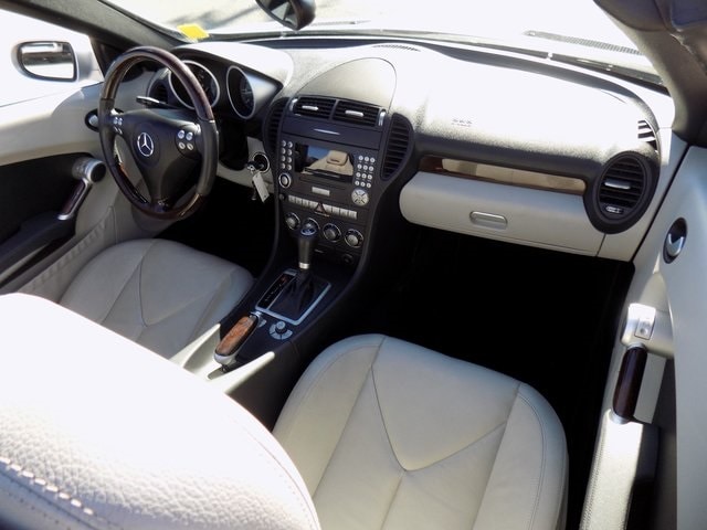2008 Mercedes-Benz SLK 280 Hard Top Convertible Diamond Silver Metallic 3.0L V6 DOHC 24V RWD 4-Wheel Disc Brakes, 9 Speakers, ABS brakes, Alloy wheels, AM/FM/WB Audio 20 w/Single In-Dash CD Plyr, Convertible HardTop, Convertible roof lining, Emergency communication system: Tele Aid, Front anti-roll bar, Front dual zone A/C, Front fog lights, Fully automatic headlights, Glass rear window, Heated door mirrors, Leather Upholstery, Outside temperature display, Power door mirrors, Power windows, Rear anti-roll bar, Rear fog lights, Remote keyless entry, Speed-sensing steering, Sport Seats, Steering wheel mounted audio controls, Turn signal indicator mirrors, 16" 5 Spoke Aluminum Alloy Wheels, Air Conditioning, AM/FM radio, Brake assist, Bumpers: body-color, CD player, Child-Seat-Sensing Airbag, Delay-off headlights, Driver door bin, Driver vanity mirror, Dual front impact airbags, Dual front side impact airbags, Electronic Stability Control, Four wheel independent suspension, Front Bucket Seats, Front Center Armrest w/Storage, Front reading lights, Illuminated entry, Integrated roll-over protection, Knee airbag, Leather Shift Knob, Leather steering wheel, Low tire pressure warning, Occupant sensing airbag, Panic alarm, Passenger door bin, Passenger vanity mirror, Power convertible roof, Power steering, Radio data system, Rear window defroster, Security system, Speed control, Sport steering wheel, Tachometer, Telescoping steering wheel, Tilt steering wheel, Traction control, Trip computer, Variably intermittent wipers, Weather band radio, 4-Wheel Disc Brakes, 9 Speakers, ABS brakes, Alloy wheels, AM/FM/WB Audio 20 w/Single In-Dash CD Plyr, Convertible HardTop, Convertible roof lining, Emergency communication system: Tele Aid, Front anti-roll bar, Front dual zone A/C, Front fog lights, Fully automatic headlights, Glass rear window, Heated door mirrors, Leather Upholstery, Outside temperature display, Power door mirrors, Power windows, Rear anti-roll bar, Rear fog lights, Remote keyless entry, Speed-sensing steering, Sport Seats, Steering wheel mounted audio controls, Turn signal indicator mirrors.