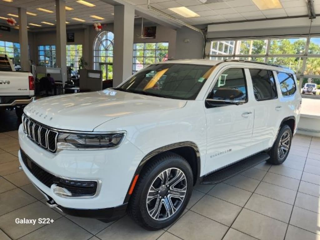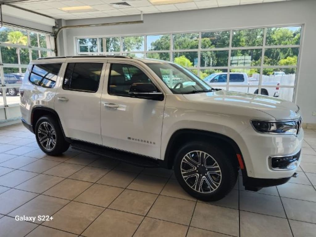 Check out all these Options! Convenience Group I (2nd Row Manual Window Shades, Auto High Beam Headlamp Control, Drowsy Driver Detection, Heads-Up Display, Intersection Collision Assist System, P&P Park & Unpark Assist w/Stop System, Side Distance Warning, Surround View Camera System, and Traffic Sign Recognition), HD Trailer Tow Package (2 Speed On Demand Transfer Case, 3.92 Rear Axle Ratio, Electronic Rear Limited Slip Differential, Heavy-Duty Engine Cooling, Removable Rear Tow Hook, Selec-Speed Control, Trailer Brake Control, and Trailer Hitch Zoom), Quick Order Package 25J, 10 Speakers, 118 MPH Maximum Speed Calibration, 3.55 Rear Axle Ratio, 3rd row seats: bench, 4-Wheel Disc Brakes, ABS brakes, Adjustable pedals, Air Conditioning, Alloy wheels, AM/FM radio: SiriusXM with 360L, Anti-whiplash front head restraints, Apple CarPlay/Android Auto, Audio memory, Auto-dimming door mirrors, Auto-dimming Rear-View mirror, Auto-leveling suspension, Automatic temperature control, Brake assist, Bumpers: body-color, Compass, Delay-off headlights, Driver door bin, Driver vanity mirror, Driver's Seat Mounted Armrest, Dual front impact airbags, Dual front side impact airbags, Electronic Stability Control, Emergency communication system: Wagoneer Connect, Exterior Parking Camera Rear, Four wheel independent suspension, Front anti-roll bar, Front Bucket Seats, Front Center Armrest w/Storage, Front dual zone A/C, Front fog lights, Front reading lights, Fully automatic headlights, Garage door transmitter, Genuine wood console insert, Genuine wood dashboard insert, Genuine wood door panel insert, Heated door mirrors, Heated front seats, Heated steering wheel, Illuminated entry, Knee airbag, Leather Trimmed Bucket Seats, Low tire pressure warning, Memory seat, Navigation System, Normal Duty Suspension, Occupant sensing airbag, Outside temperature display, Overhead airbag, Overhead console, Panic alarm, Passenger door bin, Passenger seat mounted armrest, Passenger vanity mirror, Pedal memory, Power adjustable front head restraints, Power door mirrors, Power driver seat, Power Liftgate, Power passenger seat, Power steering, Power windows, Radio data system, Radio: Uconnect 5 Nav w/10.1" Display, Rain sensing wipers, Rear air conditioning, Rear anti-roll bar, Rear dual zone A/C, Rear reading lights, Rear seat center armrest, Rear window defroster, Rear window wiper, Reclining 3rd row seat, Remote keyless entry, Security system, Speed control, Speed-sensing steering, Speed-Sensitive Wipers, Split folding rear seat, Steering wheel memory, Steering wheel mounted audio controls, Tachometer, Telescoping steering wheel, Tilt steering wheel, Traction control, Trip computer, Turn signal indicator mirrors, Variably intermittent wipers, Ventilated front seats, Voltmeter, and Wheels: 20" x 9.0" Premium 2 Aluminum.