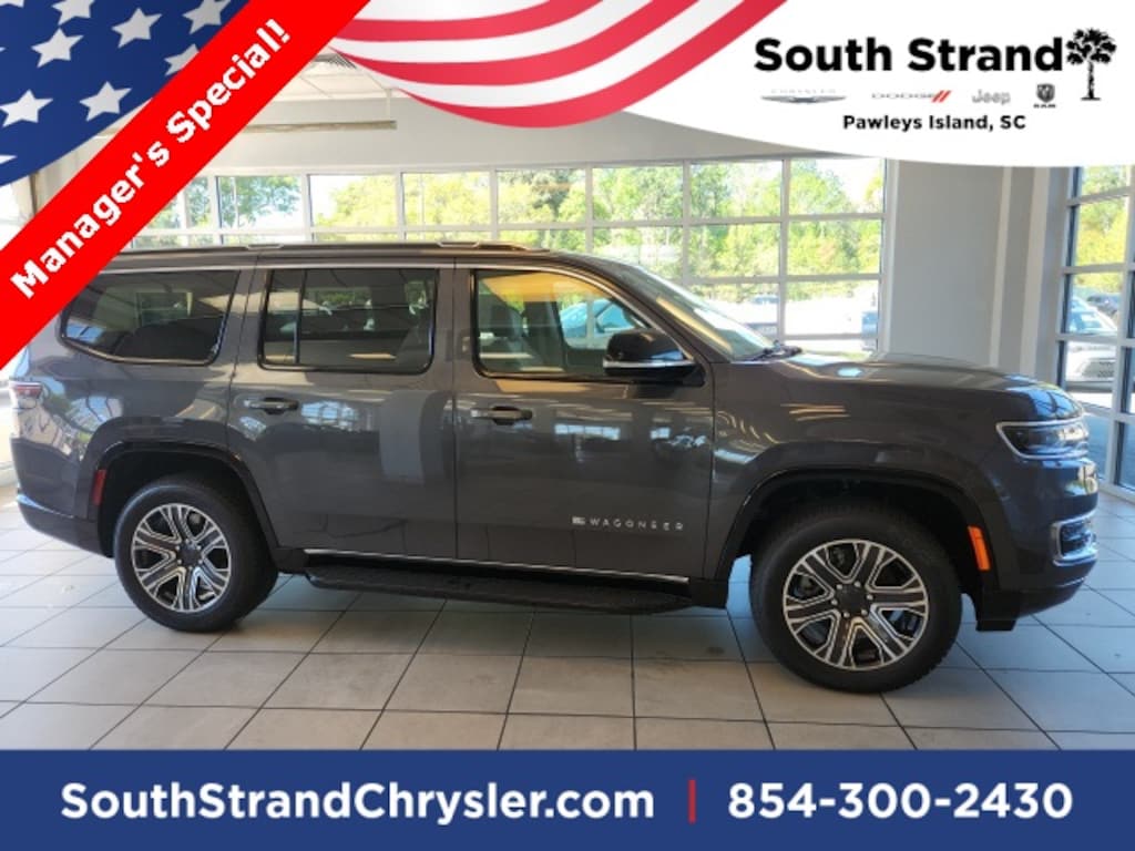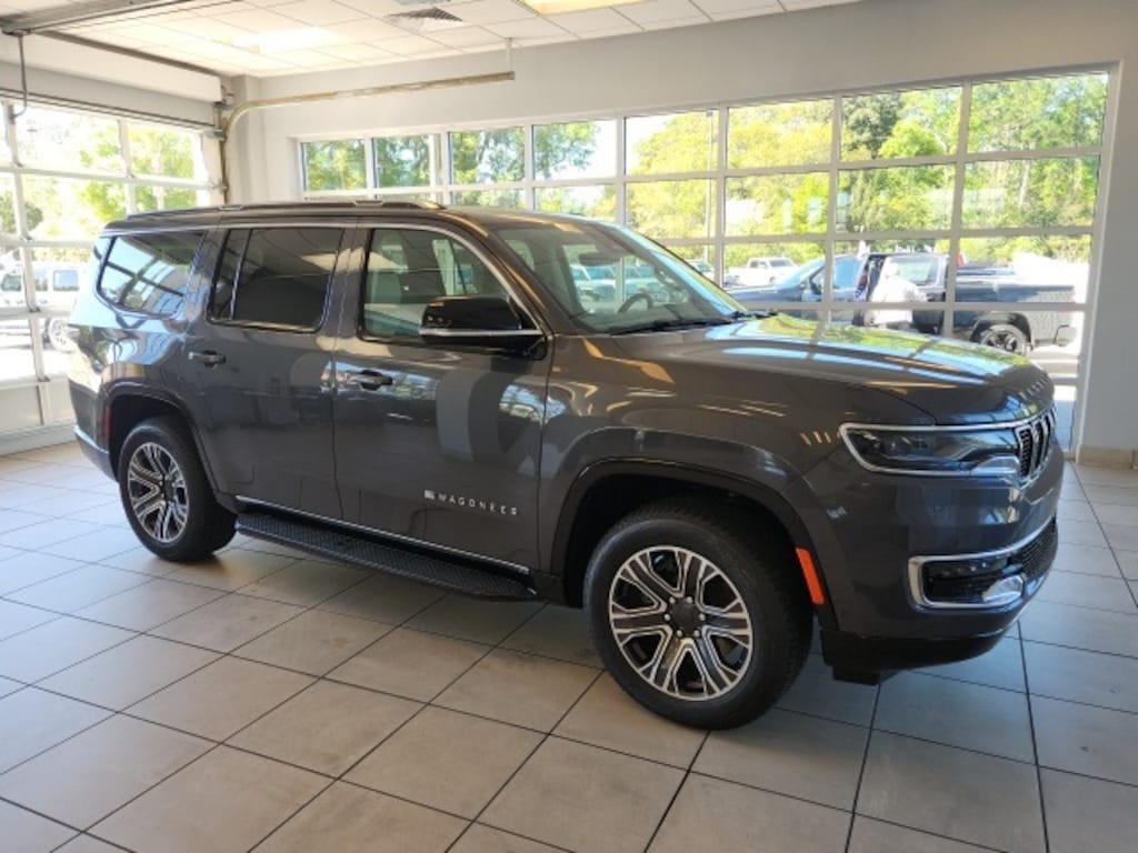 Check out all these Options! Quick Order Package 25J, 10 Speakers, 3.55 Rear Axle Ratio, 3rd row seats: bench, 4-Wheel Disc Brakes, ABS brakes, Adjustable pedals, Air Conditioning, AM/FM radio: SiriusXM with 360L, Anti-whiplash front head restraints, Apple CarPlay/Android Auto, Audio memory, Auto-dimming door mirrors, Auto-dimming Rear-View mirror, Auto-leveling suspension, Automatic temperature control, Brake assist, Bumpers: body-color, Compass, Delay-off headlights, Driver door bin, Driver vanity mirror, Driver's Seat Mounted Armrest, Dual front impact airbags, Dual front side impact airbags, Electronic Stability Control, Emergency communication system: Wagoneer Connect, Exterior Parking Camera Rear, Four wheel independent suspension, Front anti-roll bar, Front Bucket Seats, Front Center Armrest w/Storage, Front dual zone A/C, Front fog lights, Front reading lights, Fully automatic headlights, Garage door transmitter, Genuine wood console insert, Genuine wood dashboard insert, Genuine wood door panel insert, Heated door mirrors, Heated front seats, Heated steering wheel, Illuminated entry, Knee airbag, Leather Trimmed Bucket Seats, Low tire pressure warning, Memory seat, Navigation System, Normal Duty Suspension, Occupant sensing airbag, Outside temperature display, Overhead airbag, Overhead console, Panic alarm, Passenger door bin, Passenger seat mounted armrest, Passenger vanity mirror, Pedal memory, Power adjustable front head restraints, Power door mirrors, Power driver seat, Power Liftgate, Power passenger seat, Power steering, Power windows, Radio data system, Radio: Uconnect 5 Nav w/10.1" Display, Rain sensing wipers, Rear air conditioning, Rear anti-roll bar, Rear dual zone A/C, Rear reading lights, Rear seat center armrest, Rear window defroster, Rear window wiper, Reclining 3rd row seat, Remote keyless entry, Security system, Speed control, Speed-sensing steering, Speed-Sensitive Wipers, Split folding rear seat, Steering wheel memory, Steering wheel mounted audio controls, Tachometer, Telescoping steering wheel, Tilt steering wheel, Traction control, Trip computer, Turn signal indicator mirrors, Variably intermittent wipers, Ventilated front seats, Voltmeter, and Wheels: 20" x 9.0" Premium 2 Aluminum. Price includes: $2000 - 2024 National Combo Retail Bonus Cash. Exp. 11/03/2025 $3750 - 2024 Retail Bonus Cash. Exp. 11/03/2025
