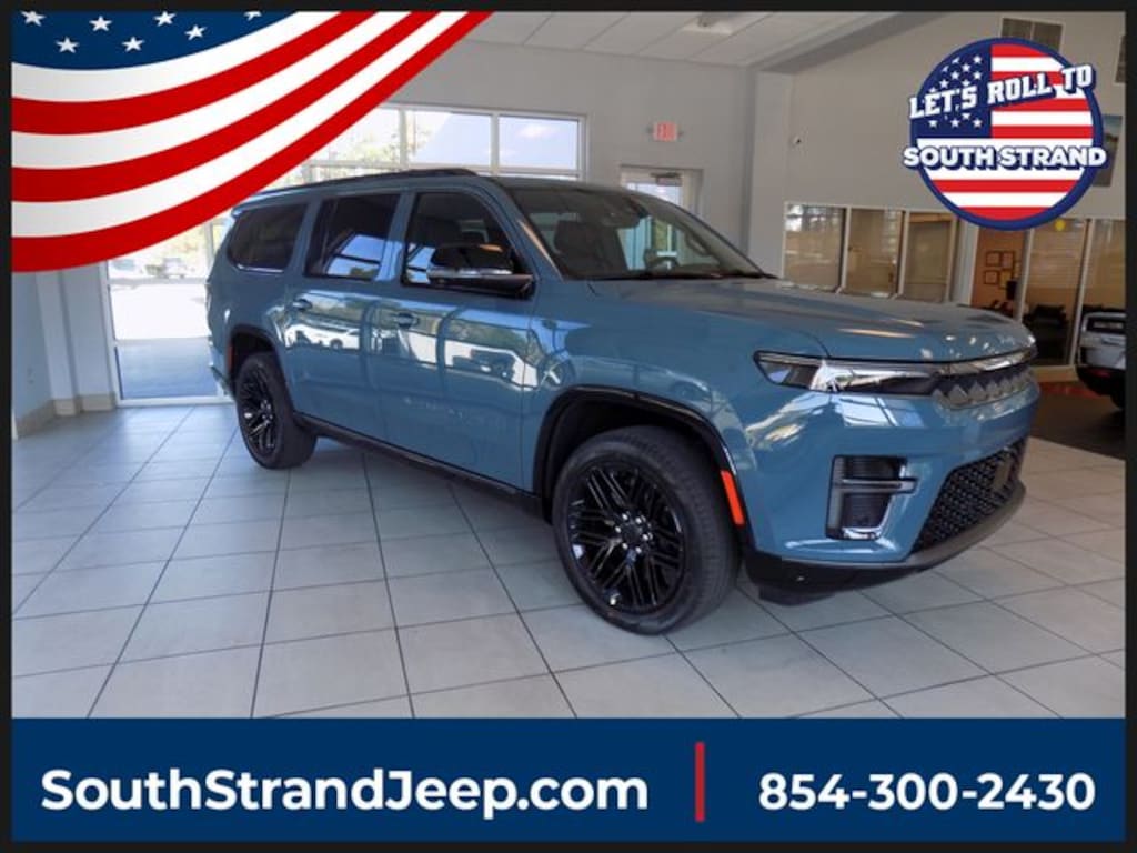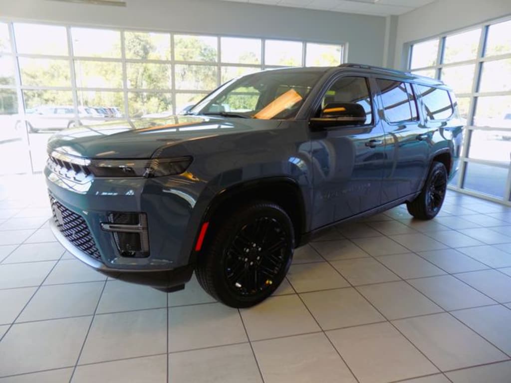 2026 Steel Blue Jeep Grand Wagoneer L Limited Reserve 4WD 8-Speed Automatic 3.0L I6 118 MPH Maximum Speed Calibration, 19 Speaker McIntosh Audio System, 2nd Row Manual Window Shades, 3 Panel Sunroof, 3.55 Rear Axle Ratio, 3rd row seats: bench, 4-Wheel Disc Brakes, 9 Speakers, ABS brakes, Air Conditioning, Alloy wheels, AM/FM radio: SiriusXM with 360L, Anti-whiplash front head restraints, Apple CarPlay/Android Auto, Audio memory, Augmented HUD, Auto Adjust in Reverse Exterior Mirrors, Auto High-beam Headlights, Auto-dimming door mirrors, Auto-Dimming Exterior Driver Mirror, Auto-dimming Rear-View mirror, Auto-leveling suspension, Automatic temperature control, Black Appearance Package, Black Exterior Accents, Brake assist, Bumpers: body-color, Cluster 12" TFT Color Display, Compass, Delay-off headlights, Driver door bin, Driver vanity mirror, Driver's Seat Mounted Armrest, Dual front impact airbags, Dual front side impact airbags, Electronic Stability Control, Emergency communication system: Jeep Connect, Exterior Mirrors Approach Lamps, Exterior Mirrors with Memory, Exterior Mirrors with Supplemental Signals, Exterior Parking Camera Rear, Four wheel independent suspension, Front anti-roll bar, Front Bucket Seats, Front Center Armrest w/Storage, Front dual zone A/C, Front fog lights, Front reading lights, Fully automatic headlights, Garage door transmitter, Heated door mirrors, Heated Exterior Mirrors, Heated front seats, Heated rear seats, Heated steering wheel, Illuminated entry, Instrument Panel, Interior Rear Facing Camera, Knee airbag, Leather Trimmed Bucket Seats, Limited Reserve Package, Low tire pressure warning, Luxury Front and Rear Floor Mats, Memory seat, Navigation System, Normal Duty Suspension, Occupant sensing airbag, Outside temperature display, Overhead airbag, Overhead console, P and P Park and Unpark Assist with Stop System, Panic alarm, Passenger door bin, Passenger seat mounted armrest, Passenger vanity mirror, Pirelli Brand Tires, Power Deployable Running Boards, Power door mirrors, Power driver seat, Power Liftgate, Power passenger seat, Power steering, Power windows, Quadra-Lift Air Suspension, Quick Order Package 29D Reserve, Radio data system, Radio: Uconnect 5 Nav with 12" Display, Rain sensing wipers, Rear air conditioning, Rear anti-roll bar, Rear reading lights, Rear seat center armrest, Rear window defroster, Rear window wiper, Reclining 3rd row seat, Remote keyless entry, Reversible Carpet/Vinyl Cargo Mat, Security system, Semi Active Damping, Side Distance Warning, Smartphone as a Key Prep, Speed control, Speed-sensing steering, Speed-Sensitive Wipers, Split folding rear seat, Steering wheel memory, Steering wheel mounted audio controls, Surround View Camera System, Tachometer, Telescoping steering wheel, Tilt steering wheel, Titanium Daylight Opening Upper, Titanium Upper Grille Applique, Traction control, Trip computer, Turn signal indicator mirrors, Variably intermittent wipers, Ventilated front seats, Voltmeter, Wheels: 20" x 9.0" Machine Face Painted Aluminum, Wheels: 22" x 9" Painted Gloss Black.
