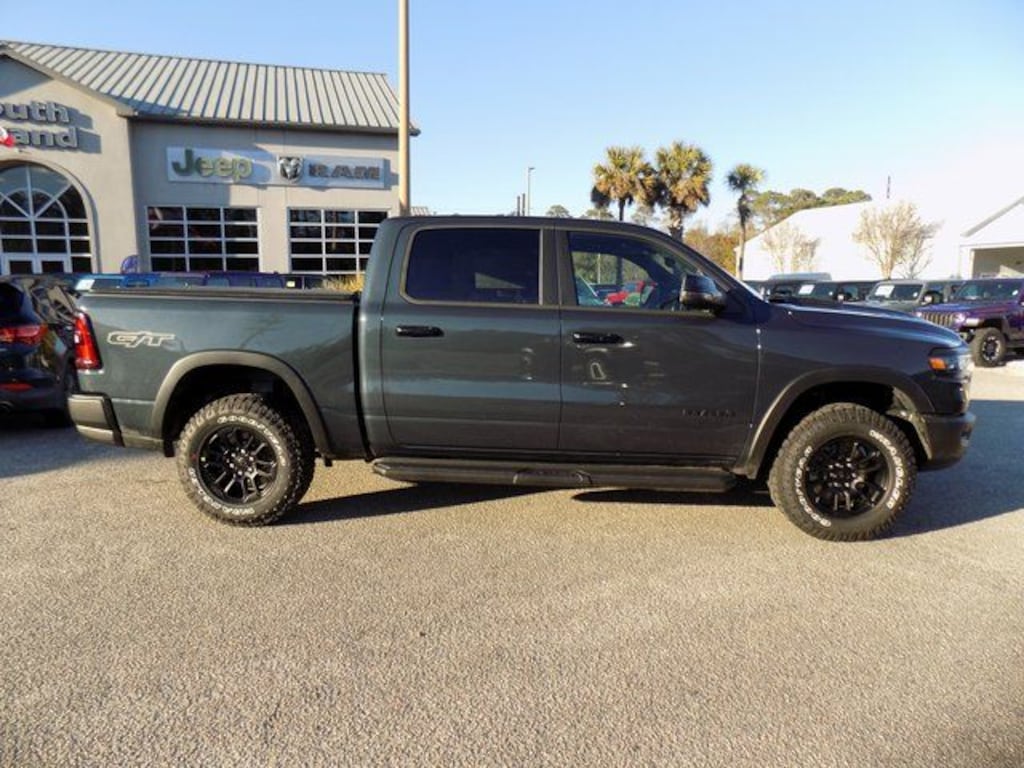2026 Forged Blue Metallic Ram 1500 Rebel 4WD 8-Speed Automatic 3.0L I6 10 Speakers, 115V Auxiliary Rear Power Outlet, 14.4" Touchscreen Display, 2-Door Passive Entry, Front Door Locks, 3.92 Rear Axle Ratio, 4 Way Front Headrests, 4-Wheel Disc Brakes, 4G LTE Wi-Fi Hot Spot, ABS brakes, Accent Color Door Handles, Accent Color Premium Power Mirrors, Accent Color Tailgate Handle, Active Noise Control System, Air Conditioning, Alloy wheels, AM/FM radio: SiriusXM with 360L, Apple CarPlay, Apple CarPlay/Android Auto, Auto High-beam Headlights, Auto Power-Folding Mirrors, Auto-Dimming Exterior Driver Mirror, Auto-dimming Rear-View mirror, Automatic temperature control, Bed Utility Group, Black Exterior Mirrors, Black Painted Exterior Mirrors Caps, Brake assist, Bucket Seats, Cloth/Vinyl Bucket Seats, Compass, Connected Travel and Traffic Services, Connectivity - US/Canada, Convex Wide-Angle Exterior Mirror Insert, Delay-off headlights, Disassociated Touchscreen Display, Dome Dual LED Reading Lamp, Driver door bin, Driver Seat Memory, Driver vanity mirror, Dual front impact airbags, Dual front side impact airbags, Dual Wireless Charging Pad, Dual-Pane Panoramic Sunroof, Electronic Stability Control, Exterior 115V AC Outlet, Exterior Mirrors Approach Lamps, Exterior Mirrors Courtesy Lamps, Exterior Mirrors with Heating Element, Exterior Mirrors with Memory, Exterior Mirrors with Supplemental Signals, Floor Console, Front anti-roll bar, Front Bucket Seats, Front Center Armrest w/Storage, Front dual zone A/C, Front fog lights, Front License Plate Bracket, Front Passenger Interactive Display, Front reading lights, Front Seat Back Map Pockets, Front wheel independent suspension, Full Length Upgraded Floor Console, Fully automatic headlights, G/T Decal, G/T Exhaust, G/T Package, Garage door transmitter, Global Telematics Box Module, Google Android Auto, GPS Antenna Input, GPS Navigation, GT Interior Theme, Harman/Kardon 19 Speaker Premium Sound, HD Radio, Heated door mirrors, Heated Front Seats, Heated front seats, Heated Second Row Seats, Heated Steering Wheel, Heated steering wheel, Illuminated entry, Integrated Center Stack Radio, Integrated Voice Command with Bluetooth, Leather steering wheel, Leather Wrapped Shift Knob, Leather-Wrapped Steering Wheel, Leather/Vinyl Bucket Seats, Low tire pressure warning, Manual Folding Exterior Mirrors, Media Hub with 2 Charge Only USBs, MOPAR 4 Adjustable Cargo Tie-Down Hooks, Mopar Black Tubular Side Steps, MOPAR Bright Pedal Kit, MOPAR Spray in Bedliner, Multi-Function Tailgate, Navigation System, Occupant sensing airbag, Off-Road Information Pages, Outside temperature display, Overhead airbag, Overhead console, Panic alarm, ParkView Rear Back-Up Camera, Passenger door bin, Passenger vanity mirror, Performance Pages, Power 2-Way Driver Lumbar Adjust, Power 2-Way Passenger Lumbar Adjust, Power 4-Way Driver Lumbar Adjust, Power 4-Way Passenger Lumbar Adjust, Power Adjust 8-Way Driver Seat, Power Adjust 8-Way Front Passenger Seat, Power Adjustable Pedals with Memory, Power door mirrors, Power driver seat, Power steering, Power Tailgate, Power windows, Proximity Approach/Departure Lamps, Quick Order Package 21W Rebel, Radio data system, Radio: Uconnect 5 Nav with 14.4" Display, Radio: Uconnect 5 Navigation with 12.0" Display, Radio/Driver Seat/Mirrors/Pedals Memory, Rain Sensitive Windshield Wipers, RAM's Head Badge, Rear 60/40 Folding Seat, Rear 60/40 Folding Split Recline Seat, Rear anti-roll bar, Rear seat center armrest, Rear step bumper, Rear Wheelhouse Liners, Rear Window Defroster, Rebel Level 2 Equipment Group, Remote keyless entry, Security Alarm, SiriusXM Radio Service, SiriusXM with 360L, Smartphone as a Key Capable, Speed control, Split folding rear seat, Steering wheel mounted audio controls, Steering Wheel Mounted Shift Control, Tachometer, Telescoping steering wheel, Tilt steering wheel, Traction control, Trailer Price includes: $3500 - 2026 National Retail Bonus Cash . Exp. 04/30/2026